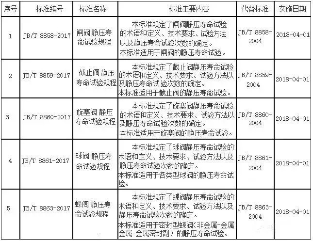 2017年12月4日, 根據(jù)中華人民共和國(guó)工業(yè)和信息化部公告2017年 第48號(hào),工業(yè)和信息化部批準(zhǔn)發(fā)布了一批行業(yè)標(biāo)準(zhǔn),其中由全國(guó)閥門標(biāo)準(zhǔn)化技術(shù)委員會(huì)歸口的標(biāo)準(zhǔn)5項(xiàng),現(xiàn)予以公布。2018年4月1日實(shí)施。
