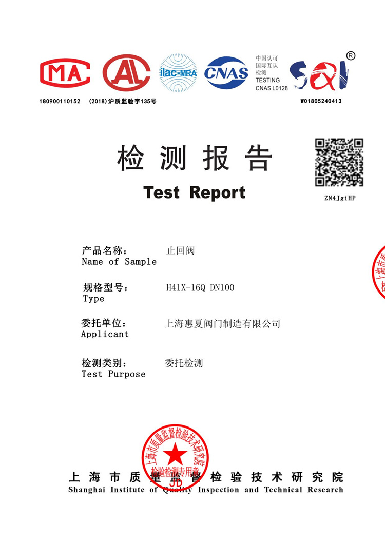 H41X消聲止回閥檢測(cè)報(bào)告: