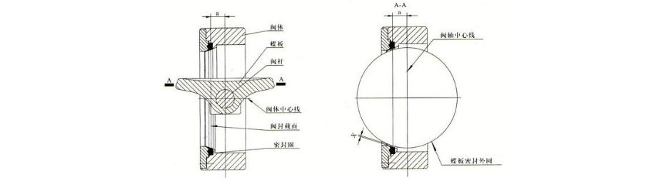 1,碟板的回轉(zhuǎn)中心(即閥門軸中心)位于閥體的中心線上,且于閥板密封截面形成一個(gè)A尺寸偏置。單偏心蝶閥是碟板的回轉(zhuǎn)中心在閥體的中心線上,閥板相對(duì)于密封面偏離一個(gè)距離,適宜軟密封。